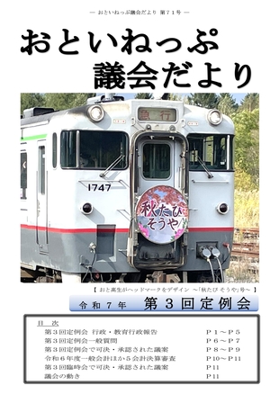 トップ > 各課 > 議会事務局 > お知らせ > おといねっぷ議会だより 第71号(令和7年11月21日発行)